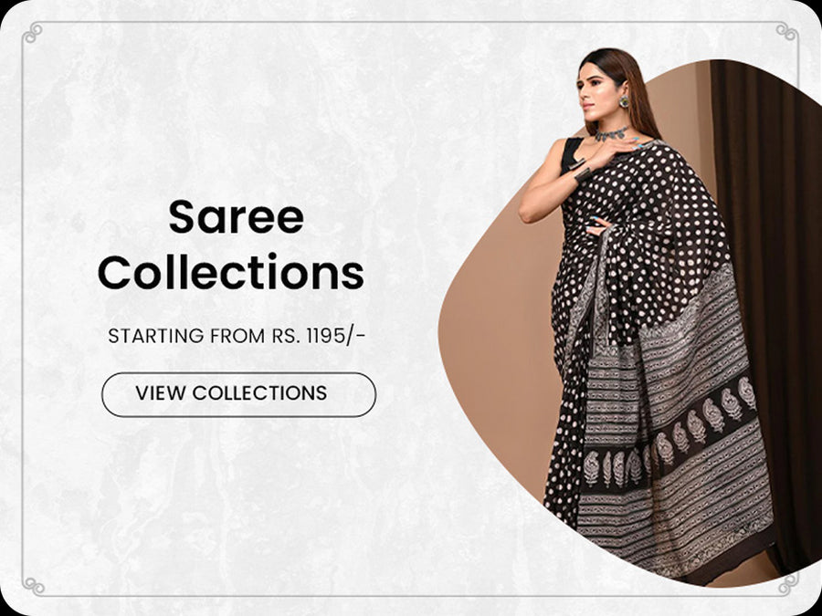 Elegant Jaipur Block Print Saree Add a touch of traditional charm to your everyday wardrobe with this authentic Jaipur block print cotton saree. A harmonious blend of comfort and craft, it’s thoughtfully designed for those who appreciate timeless, handcrafted beauty....